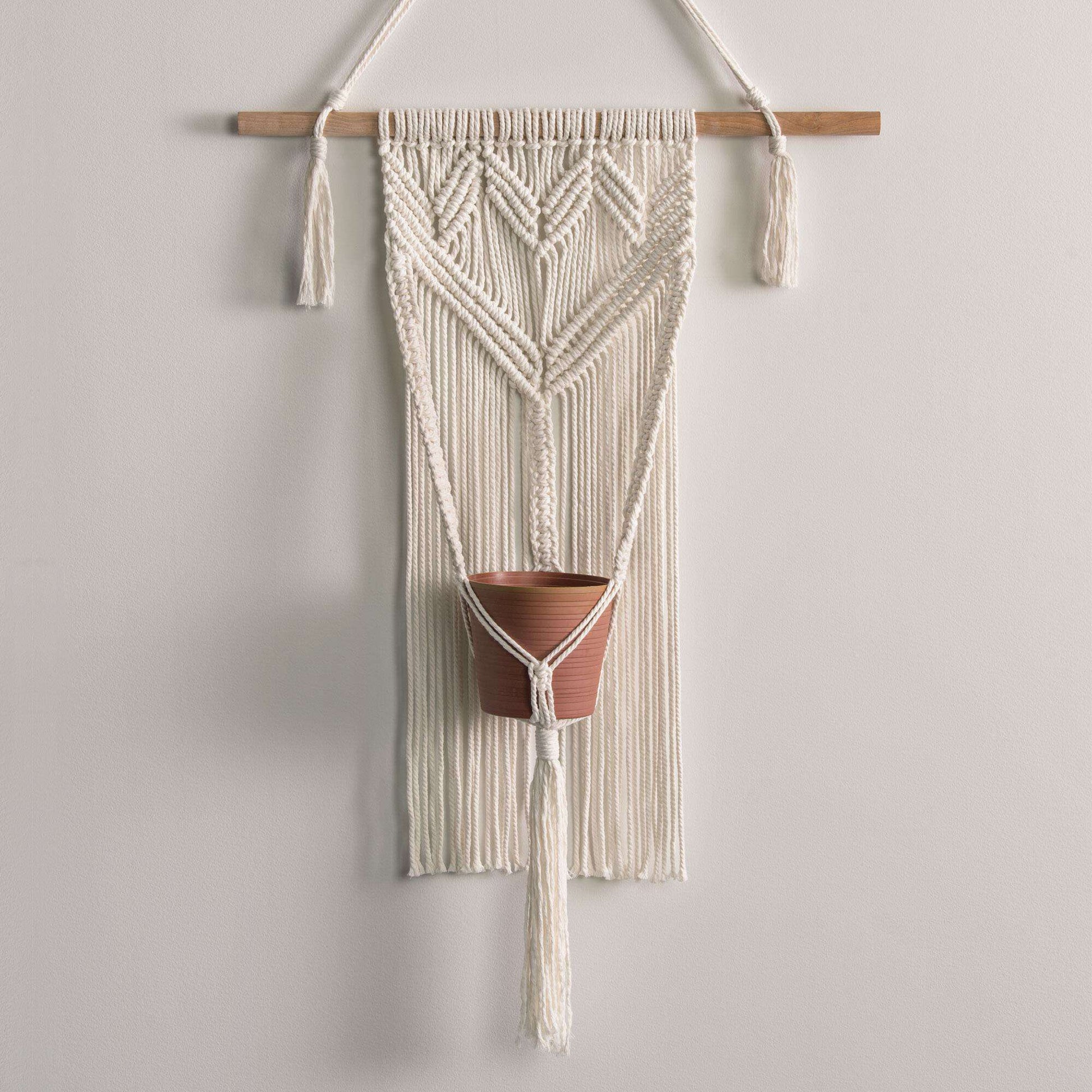 Bernat® Macramé™ is a durable matte cord that is ideal for all of your Macramé projects. A 3 ply 5mm rope style construction gives it strength and resilience. Made of 60% recycled cotton and 40% polyester, Bernat Macramé lets you expand your craft into the world of plant hangers, wall art and other classic Macramé looks. It’s also ideal for creating fringe and accents for other home décor projects.