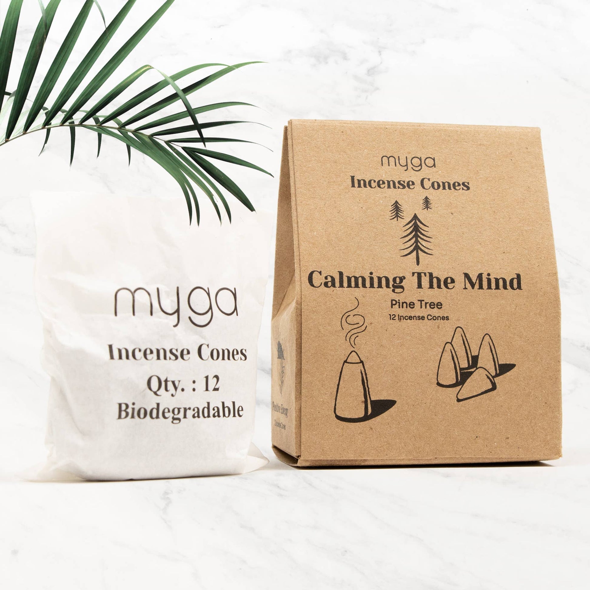 Myga’s dhoop cones are created with individual ingredients which are finely grounded, mixed together to a dough and pressed into a cone shape. After the drying process, the incense cones are wrapped in eco-friendly butter paper and then packed in a recyclable paper box.