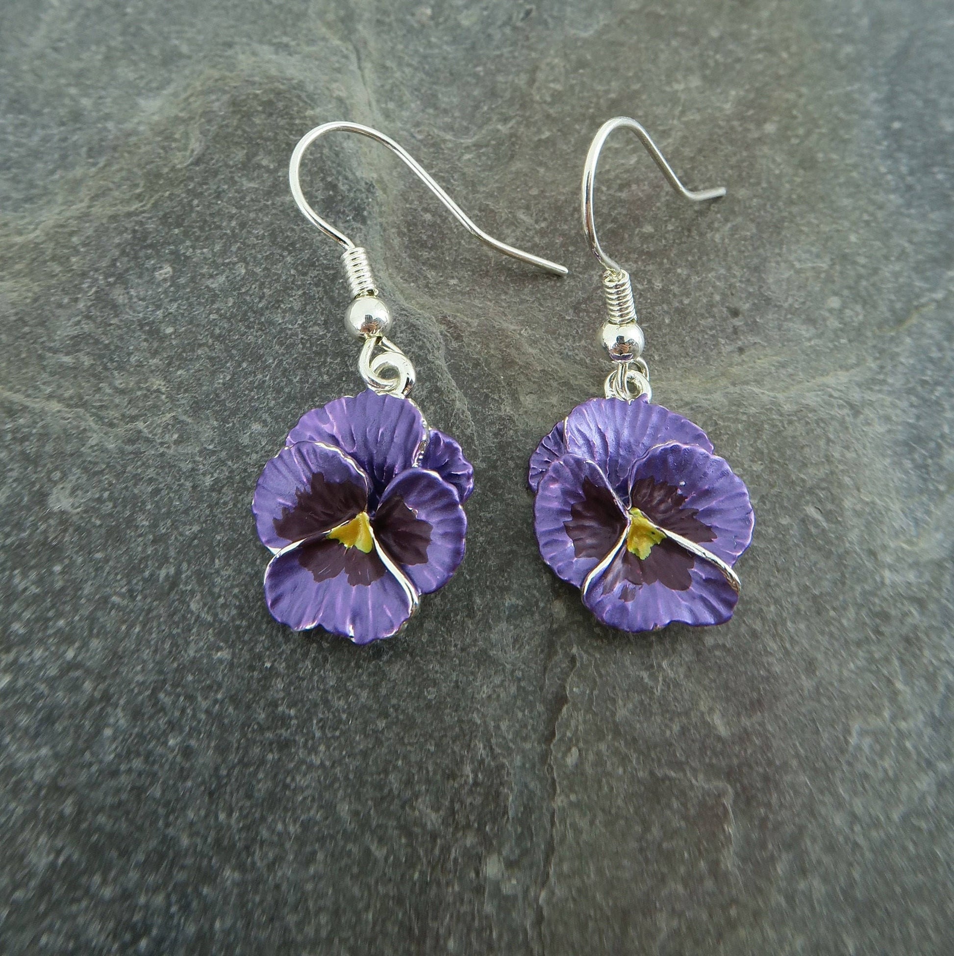 These beautiful earrings embody nature with their intricate realistic design and attention to detail. The Pansy is a symbol of love, compassion, remembrance and nostalgia, with the purple pansy specifically representing beauty, dignity and nobility. Pansies are the birth flower for the month of February. Purple pansies make fabulous gifts for nature lovers, perfect for any occasion.